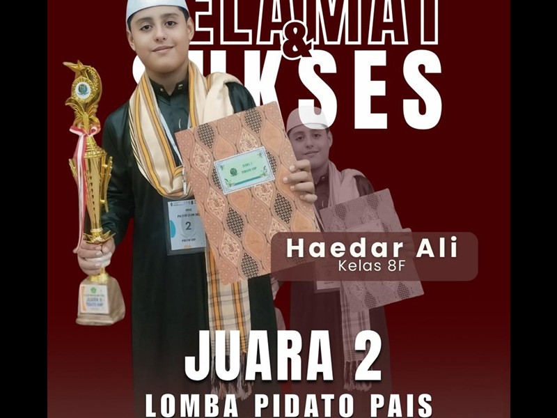 Selamat untuk nanda Haedar Ali meraih juara 2 tingkat Propinsi tahun 2025 dalam lomba pidato PAIS