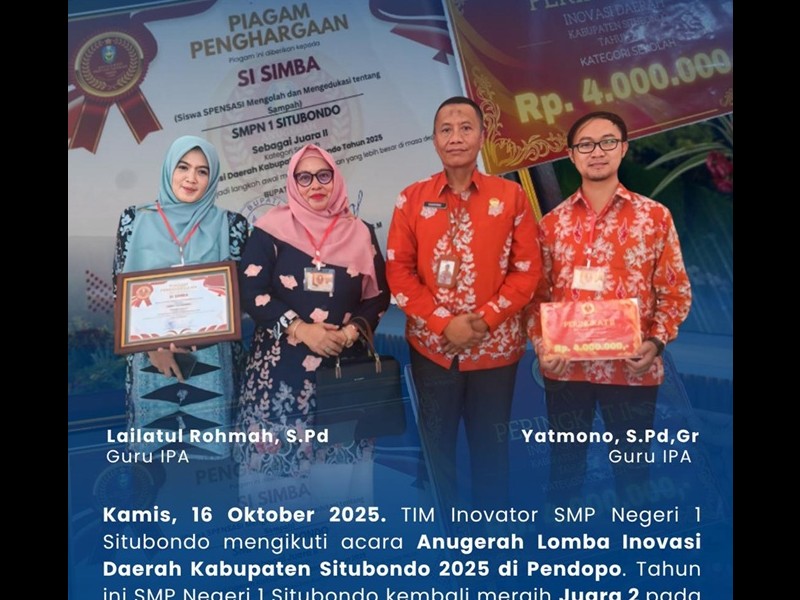 Penerimaan Anugrah Lomba Tim Inovasi Daerah Kabupaten Situbondo