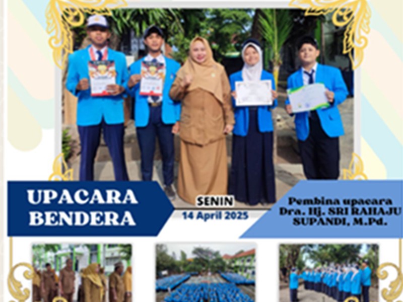 Pelaksanaan kegiatan rutin Upacara Bendera hari Senin, 14 April 2025 yang diikuti oleh seluruh peserta didik SMP Negeri 1 Situbondo beserta pendidik dan tenaga kependidikan, bertindak selaku pembina upacara adalah Plt. Kepala Sekolah yakni Dra. Hj. Sri Rahaju Supandi,M.Pd.